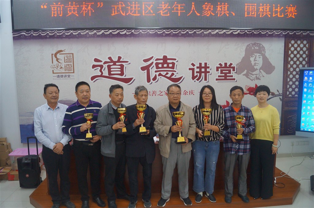 象棋是中国一种传统棋牌竟技项目,千古杀伐的小战场,转眼之间就是一盘残棋,它最吸引人的正是“棋谋妙计定山河”的博弈智慧。以棋会友,享受休闲生活。经过7轮激烈角逐,武进区“前黄杯”第五届社区健康老人象围赛团体一至六名,分别是湖塘、高新北区、前黄、礼嘉、牛塘、雪堰。高新北区的杨清成荣获健康老年人组象棋个人第一名。前黄镇的奚士东荣获围棋组个人第一名。2019年中国体育彩票全国象棋业余棋王赛江苏赛区常州市武进区预选赛荣获团体一至六名的,分别是潘家、南街、漕桥、嘉新、蓝山湖、运村社区。社区党员代表象棋赛花苑社区的陈细苟荣获第一名。