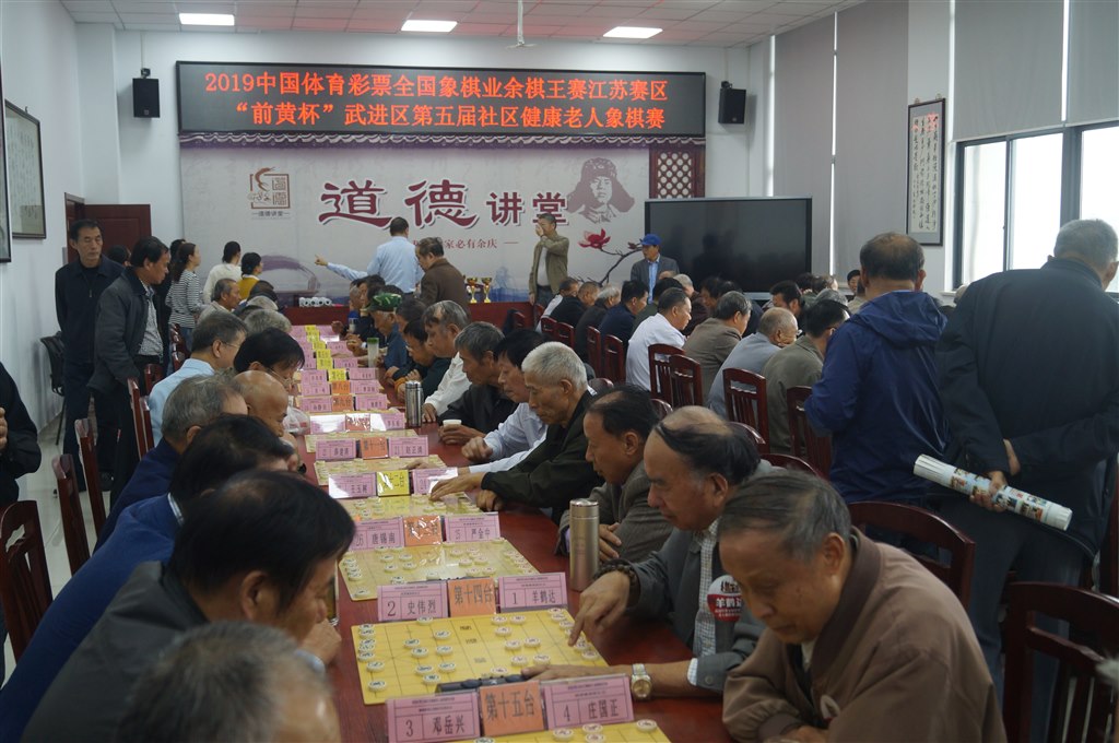 10月10日,2019年中国体育彩票全国象棋业余棋王赛江苏赛区常州市武进区预选赛系列赛、武进区第五届社区健康老人象围赛、社区党员代表象棋赛、武进区“前黄杯”象围棋赛,在前黄文体中心隆重举行,来自湖塘、雪堰、湟里、区级机关退休干部等单位的近百名民间棋王,象棋钟情者同台竞技,其乐融融,彰显新时代老人的幸福生活,他们力争夕阳无限好的情怀让人心动。