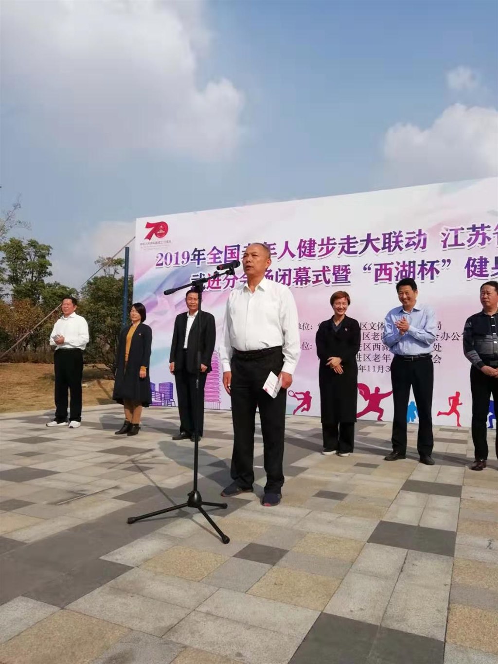 11月3日,全国老年人健步走大联动武进分会场启动仪式在西湖街道蠡河公园举行。区文体广电和旅游局、体育总会、老龄办、西湖街道党工委、老年人体协领导出席启动仪式。