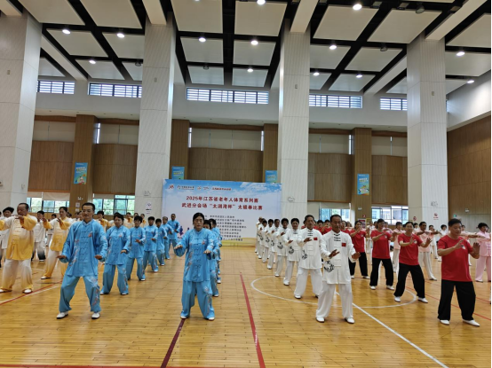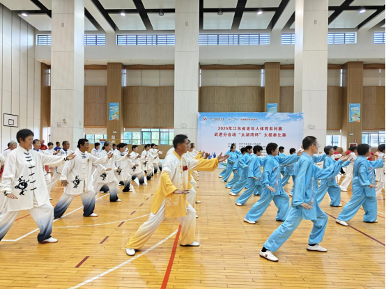 9月20日2025年江苏省老年人体育系列赛武进分会场迎国庆“太湖湾杯”老年人太极拳比赛在雪堰镇全民健身中心举行,来自全区8个镇2个街道1个开发区,共11支太极拳队参加该次比赛,大会在雄壮的国歌声中开幕,东道主雪堰镇副镇长张怡同志致欢迎词,热情介绍雪堰镇开展迎国庆全民健身概况,全镇普及太极拳活动情况,区文体广电和旅游局公共服务科科长叶波同志致开幕词,勉励全体运动员赛出风格,赛出水平,为庆祝国庆奉献精彩节目,区老年人体协主席单骏初同志宣布比赛开幕,开幕式结束还进行了健身气功和太极拳二项团体操表演,精彩的表演获得观众阵阵掌声,国际竞赛套路24式太极拳比赛在紧张热烈的气氛中进行,比赛采用现场打分、现场竞分办法,经过紧张激烈的角逐争夺,最终礼嘉镇太极队荣获特等奖,雪堰镇、洛阳镇太极队荣获一等奖,南夏墅街道、高新北区、湖塘镇太极队荣获二等奖,其余五支太极队荣获优秀奖,本次迎国庆“太湖湾杯”太极拳比赛取得圆满成功,受到广大市民和太极拳爱好者的一致好评。